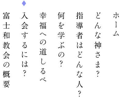 富士和教会に入会しようと思ったら、まず、ご家族に相談してください。こころからの幸せを感じられるようになるのは、家族が一丸となって、神の教えを守ることができるようになったときです。ですから、せめて夫婦、親子揃って神の教えを学んでいただきたいのです。ご家族の気持ちがひとつになって、入会を希望するときは、使者にお申し出ください。使者から入会の承諾がありましたら、手続きを行ってください。